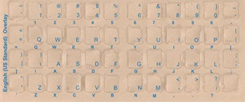 English Keyboard Overlays Stickers, Labels. Blue Transparent Characters for White/Ivory Color Keyboards