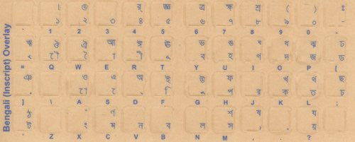 Bengali Keyboard Stickers Labels Overlays Transparent with Blue Characters Letters